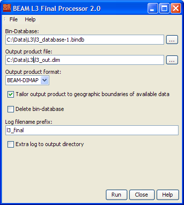 The L3 Final Processor converts a bin database to a final level 3 product by running a finalisation process on the accumulated bins (depending on the needs of the algorithm) and applying a projection (geographic lat/lon) to the binned data cells.