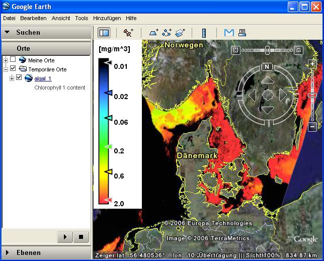 The exported image is saved in the KML the Keyhole Markup Language (link: http://earth.google.com/kml/). To view this file a version of Google Earth (link: http://earth.google.com/) is necessary.