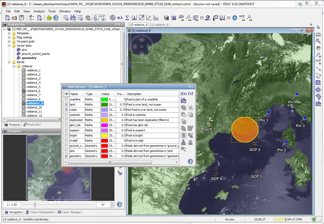 You can quickly open an Image View for a band or tie-point grid by double-clicking on an item of the expanded product root nodes. Accordingly a metadata view is opened if you click an item the flag coding or metadata nodes. Please also refer to the Navigation Window and the the Zoom and Panner tools.