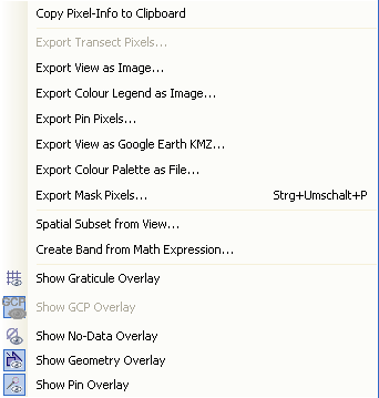 When you right-click the mouse over the Image View a popup menu comes up: