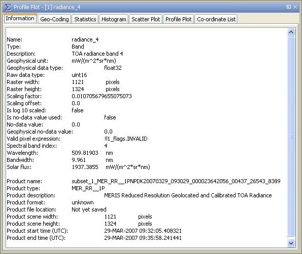 This dialog shows general properties of a loaded product, band or tie-point grid and their parent product.