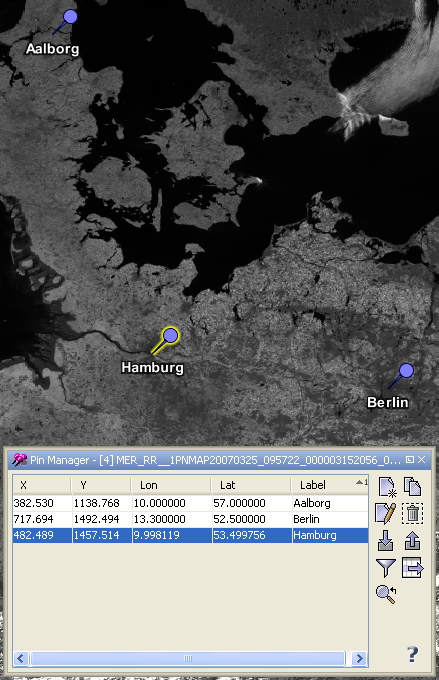 In the following the tool buttons of the pin manager are explained.
