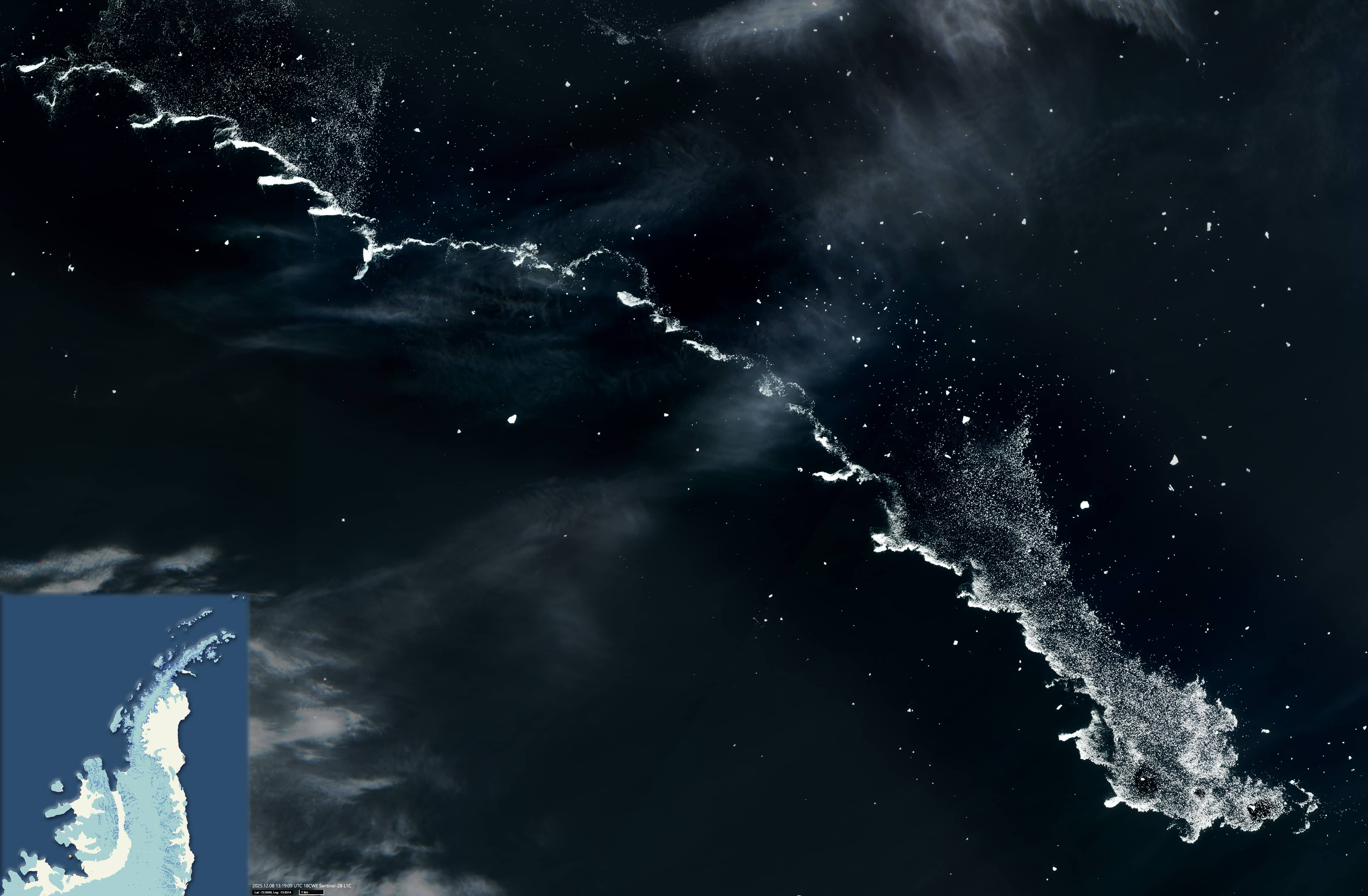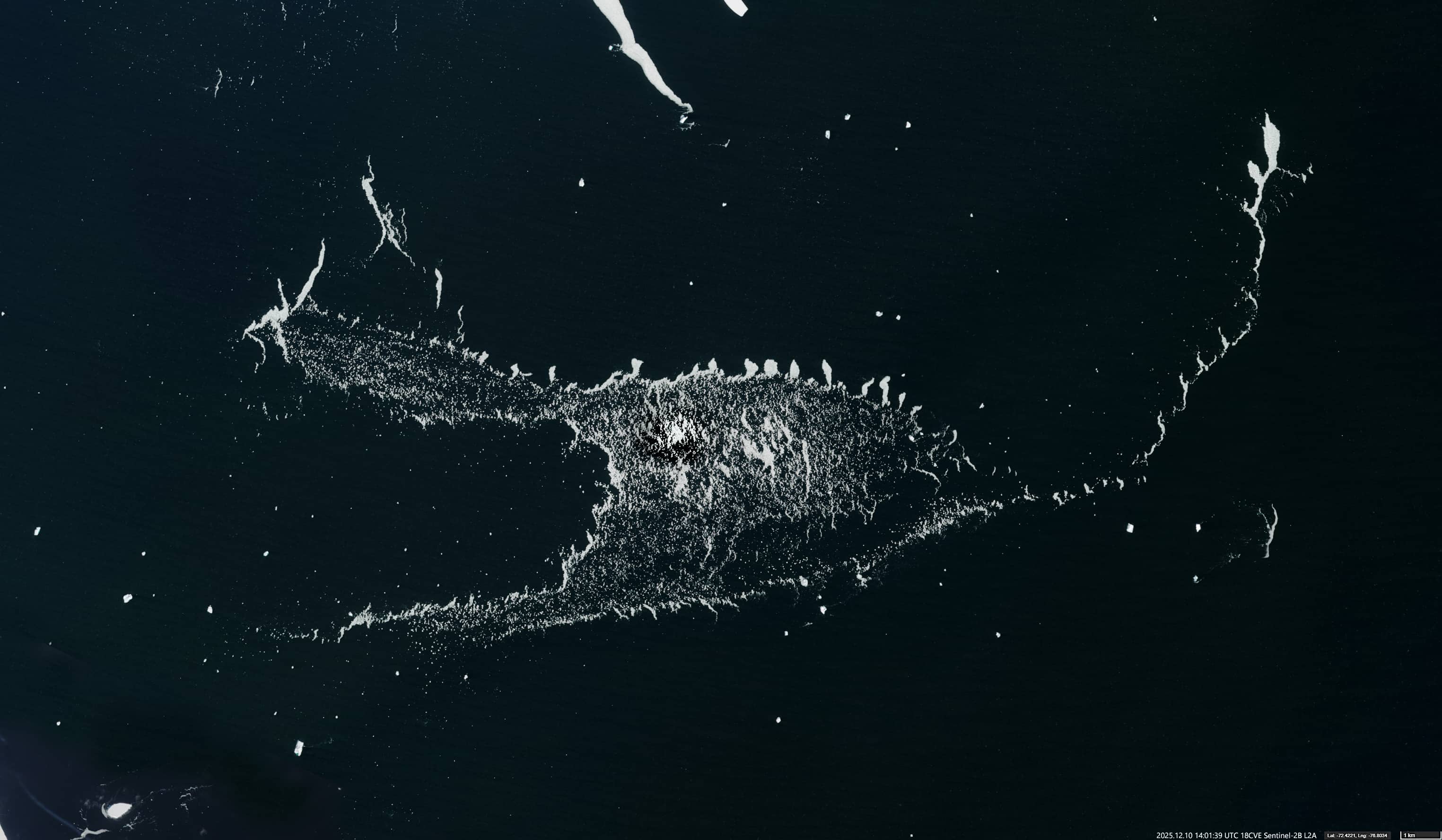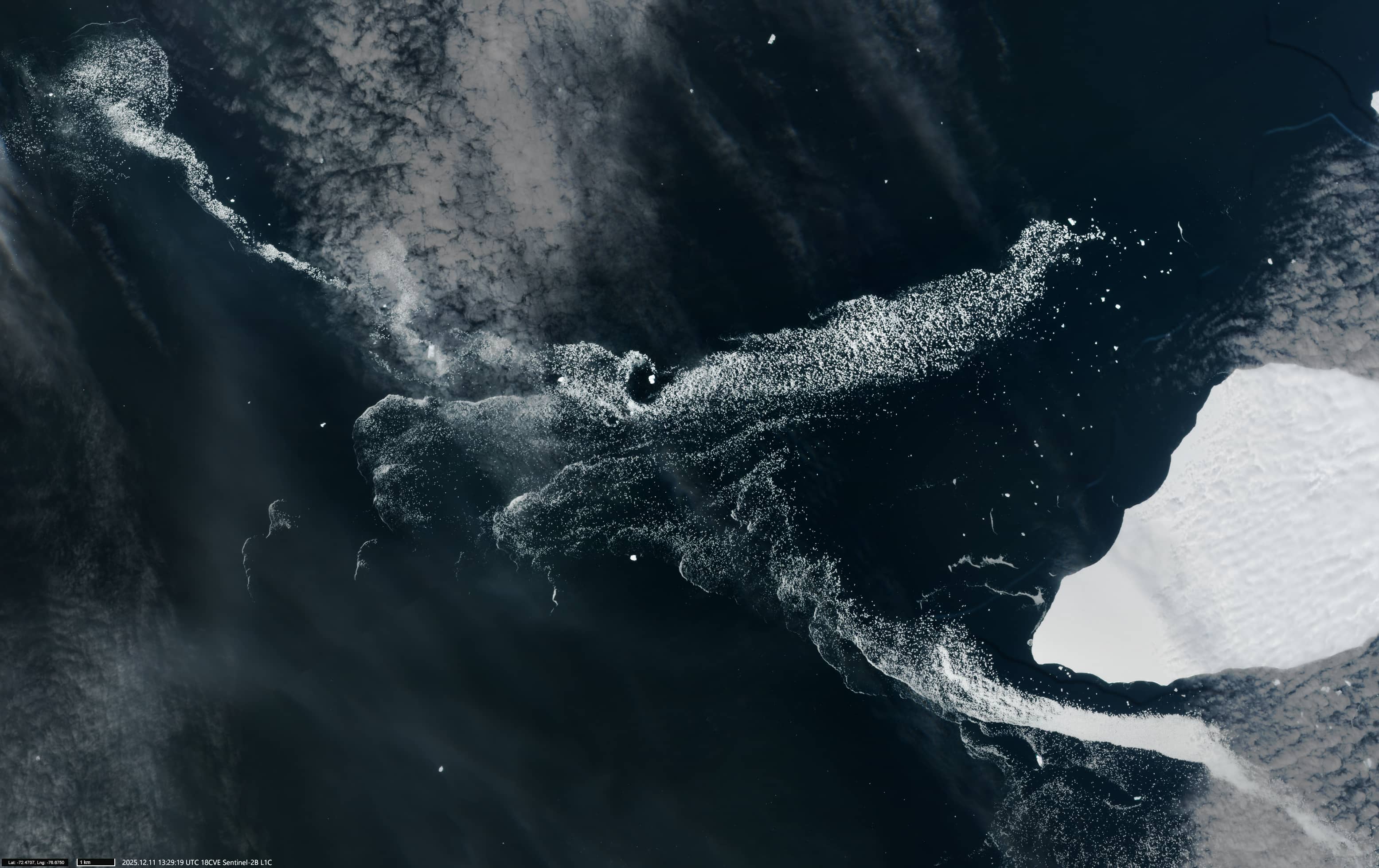 On December 8, Sentinel-2 captured a creature (Figure 1)in the Ronne Entrance bay, just southwest of the Monteverdi Peninsula.