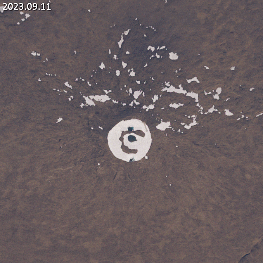 The volcano is covered with snow in winter, which partially (or even completely) melts in summer (see Figure 2 animation).